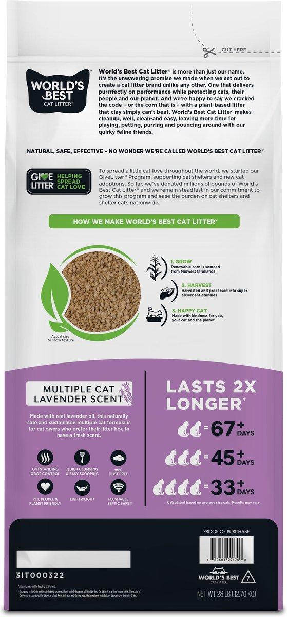 World's Best Premium Cat Litter | Original Series Clumping Lavender Scented Multi-Cat Cat Litter | 28 lb bag
